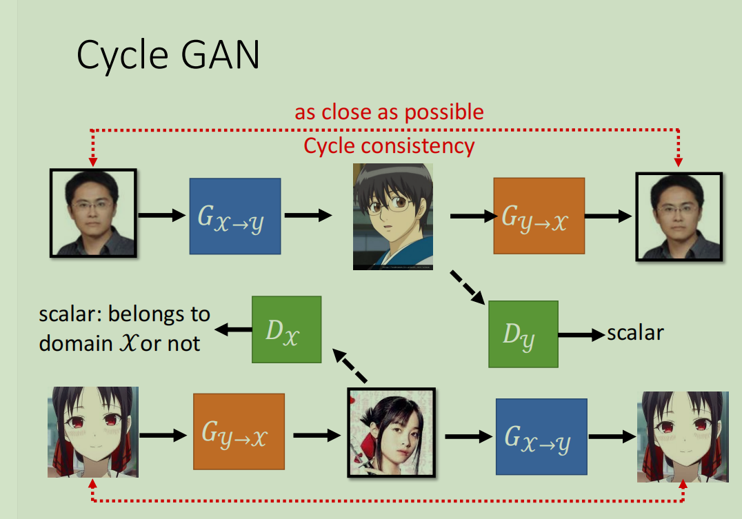 将一张真人照片 x 通过 GX→Y 转换成动漫头像。